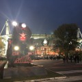 △サンクトペテルブルク市内のプーシキン像。後ろには国立ロシア美術館。