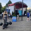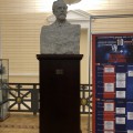 △ガガーリン(Юрий Алексеевич Гагарин)の銅像。現在もガガーリンが初の有人宇宙飛行に成功した4月12日は宇宙飛行士の日としてロシアでは毎年祝われています。