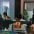 写真は昨年のX’masに、勤続23年の日向寺チーフアナウンサーを囲む会にて