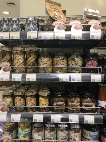 △充実しているのは、瓶詰めコーナー。ロシア人の友人はこう話します。「きのこはスーパーではほとんど買わないの。旬の時期に森でたくさん採って、あとはダーチャで瓶詰めにしておくのよ。食べたい時は、それを使うの。」(関連☆モスクワ通信『郊外の菜園付きの別荘ダーチャでくつろぐ初夏の一日』)