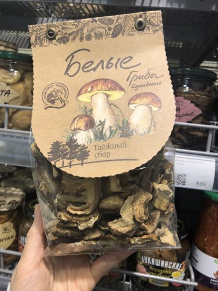 △軽くて日持ちのする乾燥きのこは、お土産としても人気。戻してパスタやスープに加えると旨味がぎゅっと広がります。なかでも一番人気は、ポルチーニ(Белые грибы)。おとぎ話に出てきそうな、まさにザ・きのこ!の形ですね。